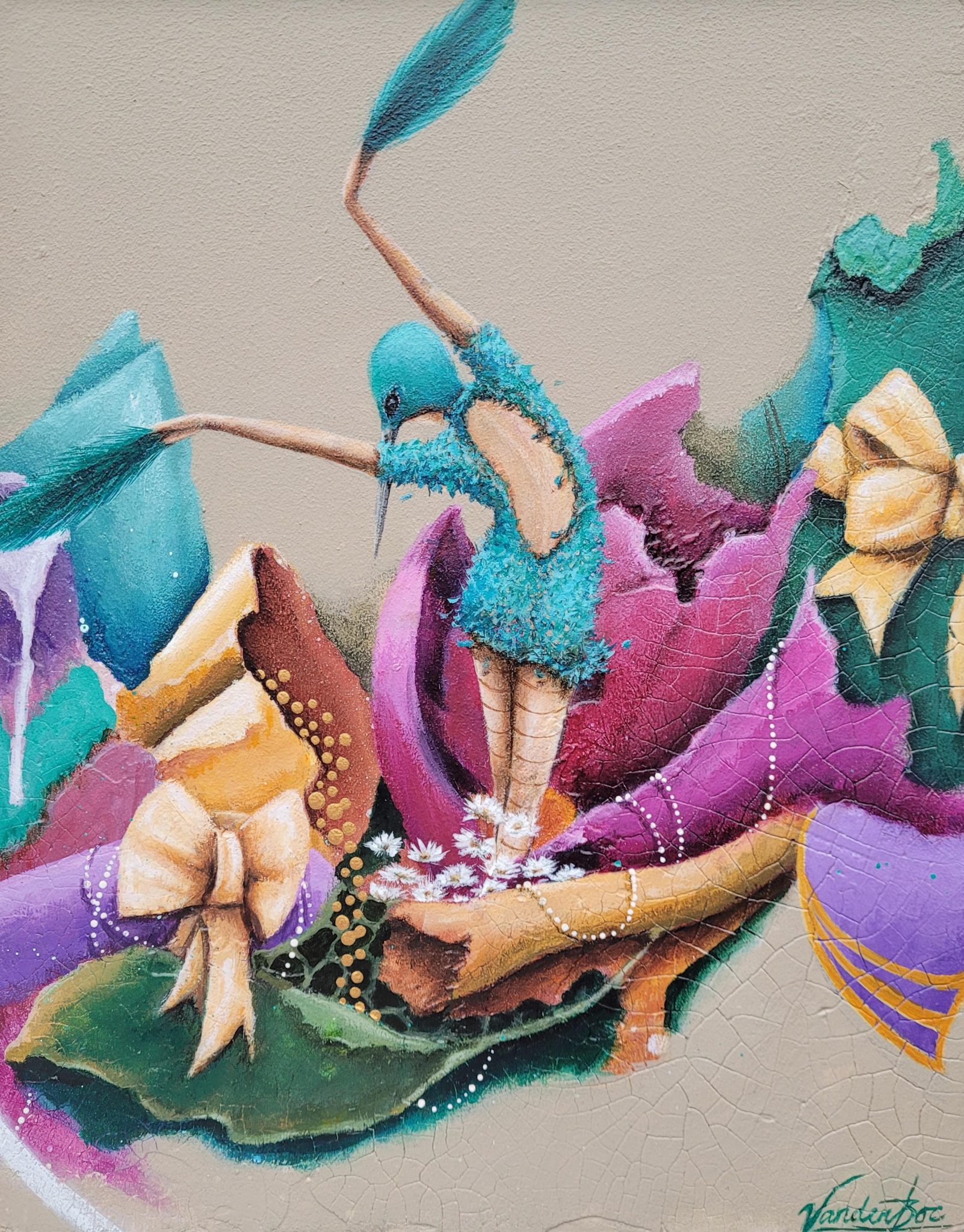 Cynthia Vandenbor (1973) woont en werkt in Rotterdam. Haar specialiteit is het schilderen van ‘vogelvrouwen’, deze hybriden komen voort uit haar liefde voor sprookjes, sagen en mythen. De vogelvrouwen vertegenwoordigen het dierlijke in de mens en de ogenschijnlijk menselijke trekjes in dieren. Ze boeien de toeschouwer met hun zonderlinge verschijning die toch sensueel, elegant en vrouwelijk is.