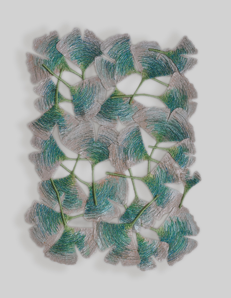 De natuur is het hart van Elke Meulendijks’ artistieke universum. Haar eigen tuin dient als inspiratiebron: licht dat door bladeren valt, de suggestie van wind en beweging — het geheel vastgelegd via lagen en subtiel kleurgebruik.