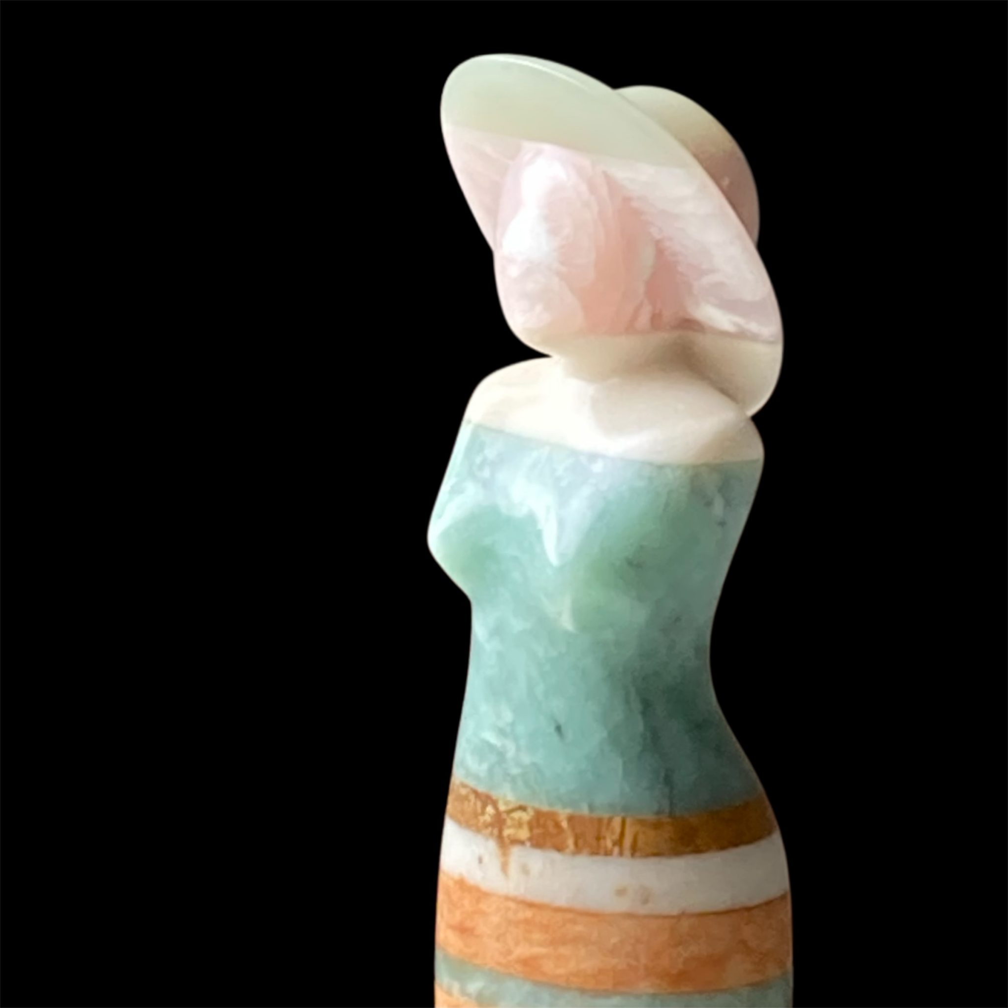De figuratieve beelden van Danielle kenmerken zich door gestroomlijnde vlakken en vloeiende lijnen. Haar kunstwerken stralen zowel een verfijnde elegantie als een verborgen, innerlijke kracht uit. De gelaagdheid van de stenen voegt daar nog een verfrissende originaliteit aan toe.