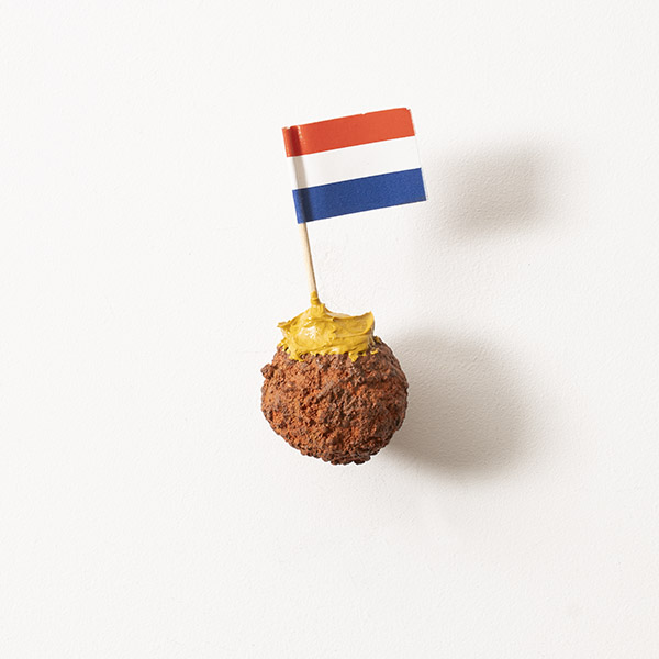 Leuk zo'n oer Hollandse bitterbal, gewoon aan je muur! Heel goed te combineren met de bordjes soep, kopjes koffie en de vorken met de lekkerste hapjes! Te bevestigen met een eenvoudige spijker.
