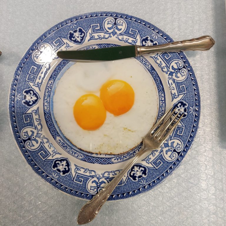 Fotografie van de bovenste plank! de bordjes eten van Nadja Willems zijn zo levensecht, een sieraadje aan je muur. Welke kies jij?