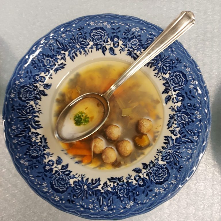 Het lijkt net echt en de lepel ligt er nog in, en de soepballen.