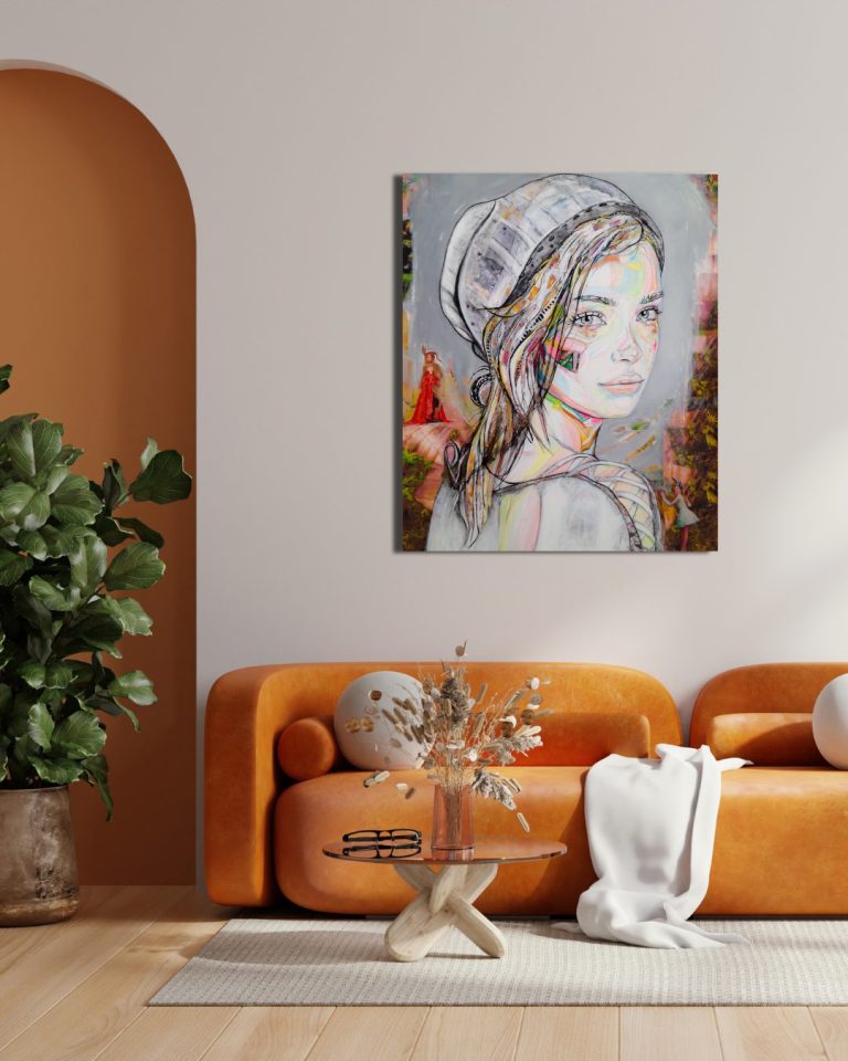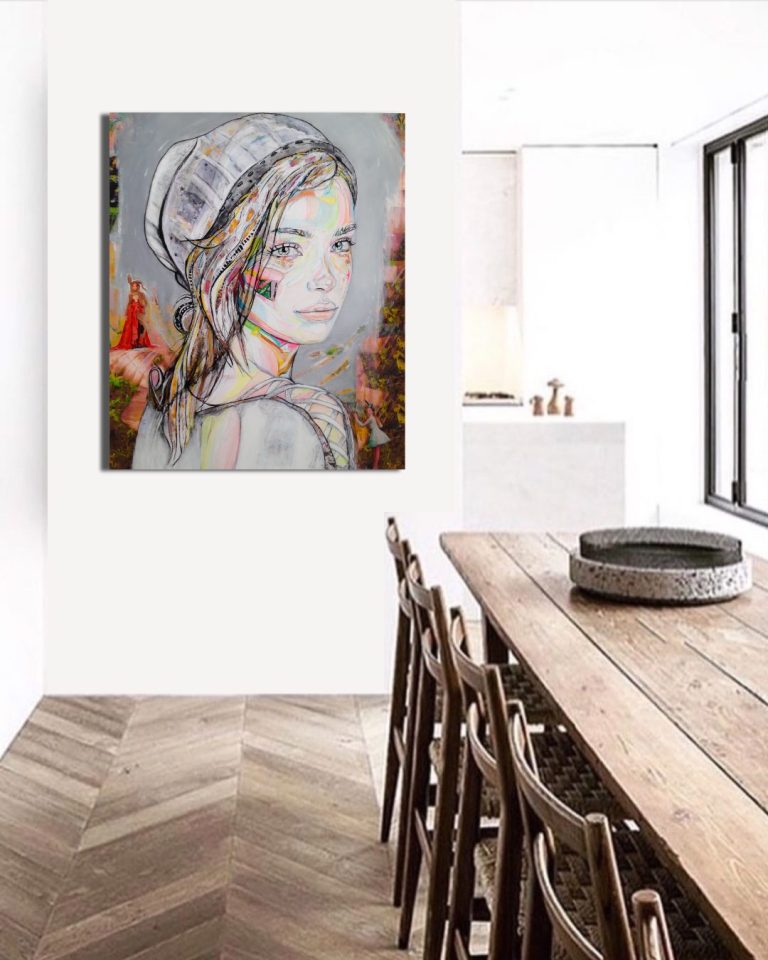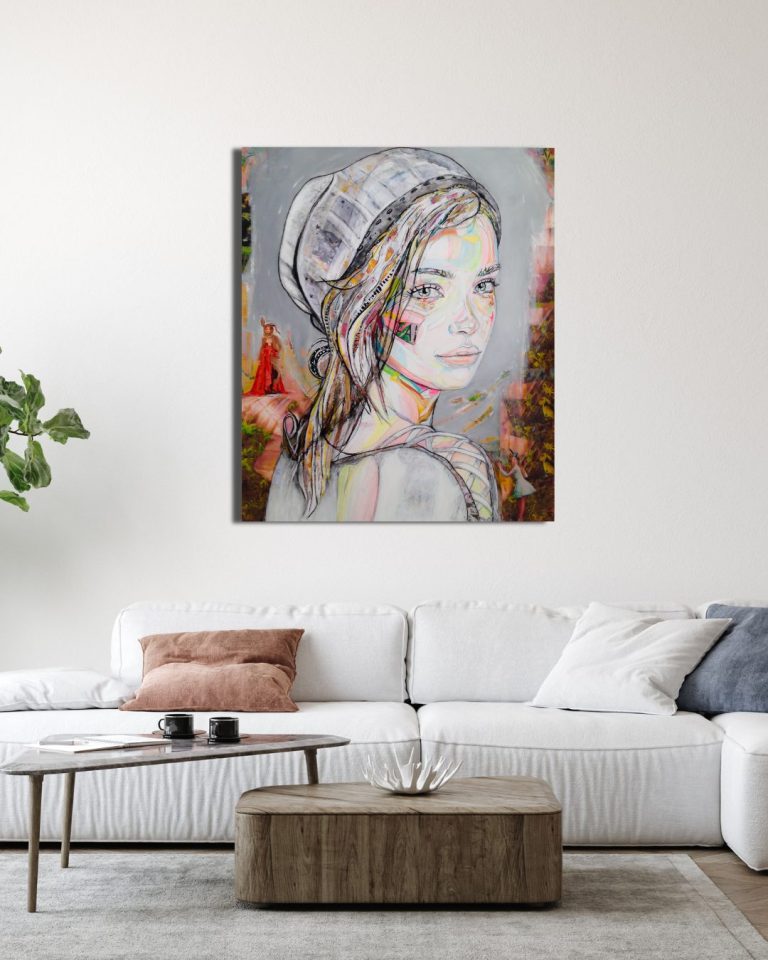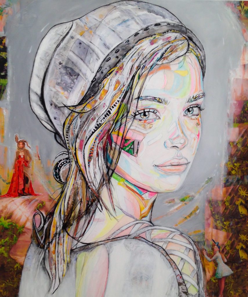 gecombineerde moderne technieken vormen samen een pakkend hedendaags portret. Een jonge vrouw van de wereld.