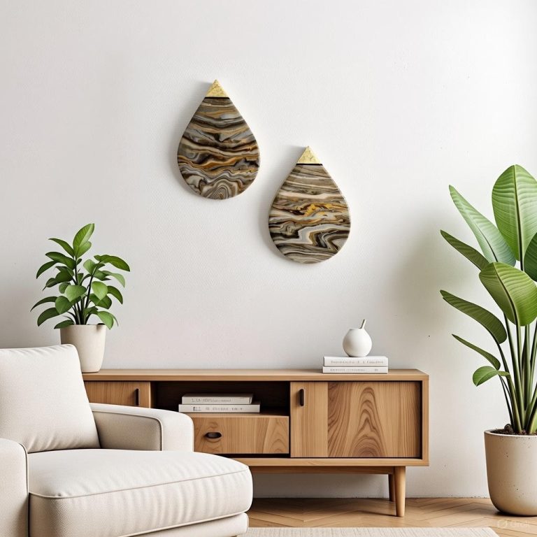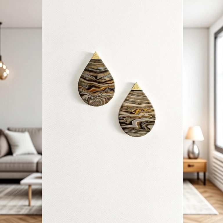 Prachtige set van 2 druppelvormige panelen in mooie marmer tinten.