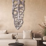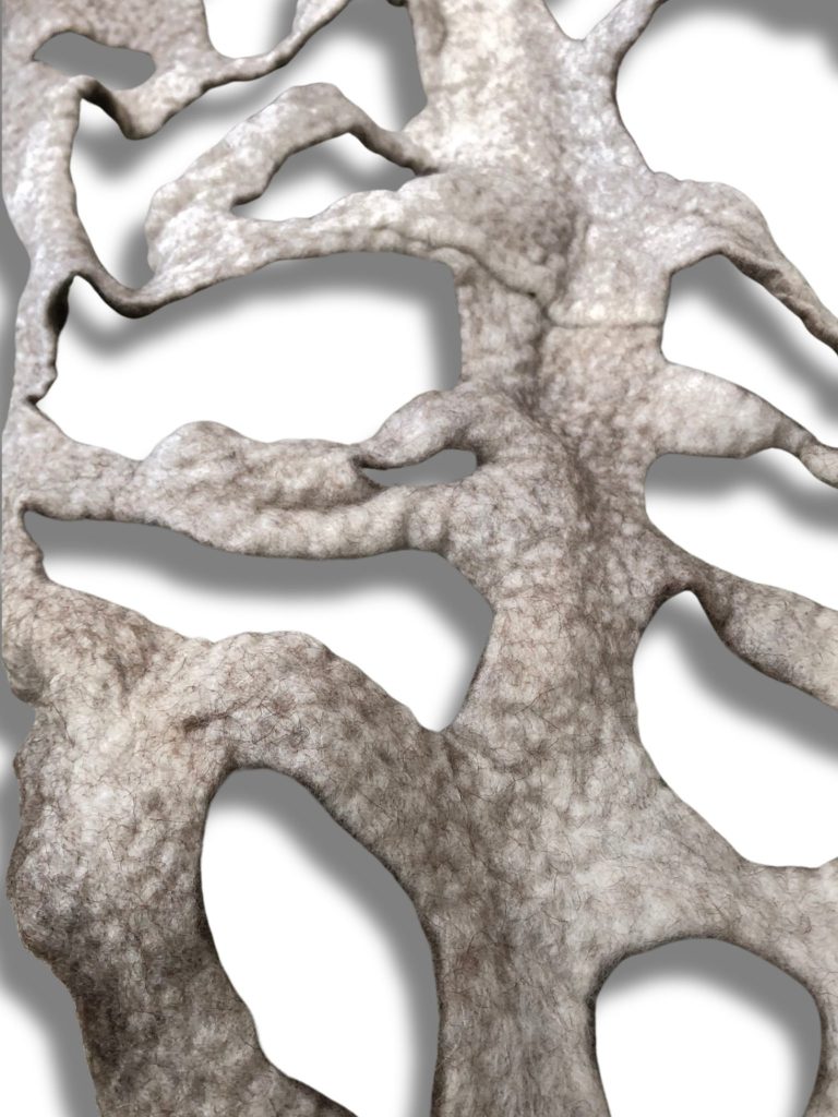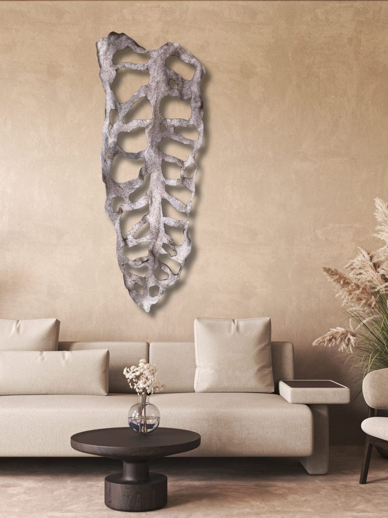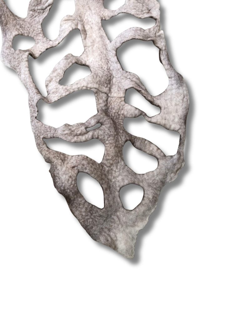 Kunstwerk in de vorm van een Monstera blad. Het werk laat het laatste stadium van het blad zien in de wintertijd: het bladskelet.