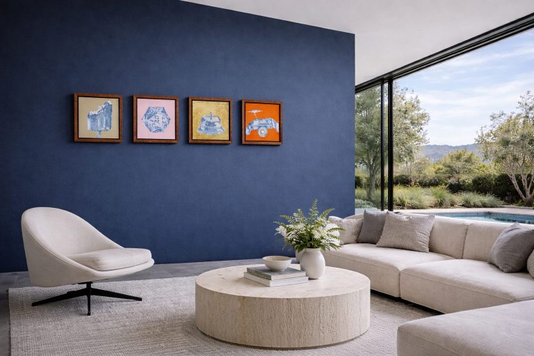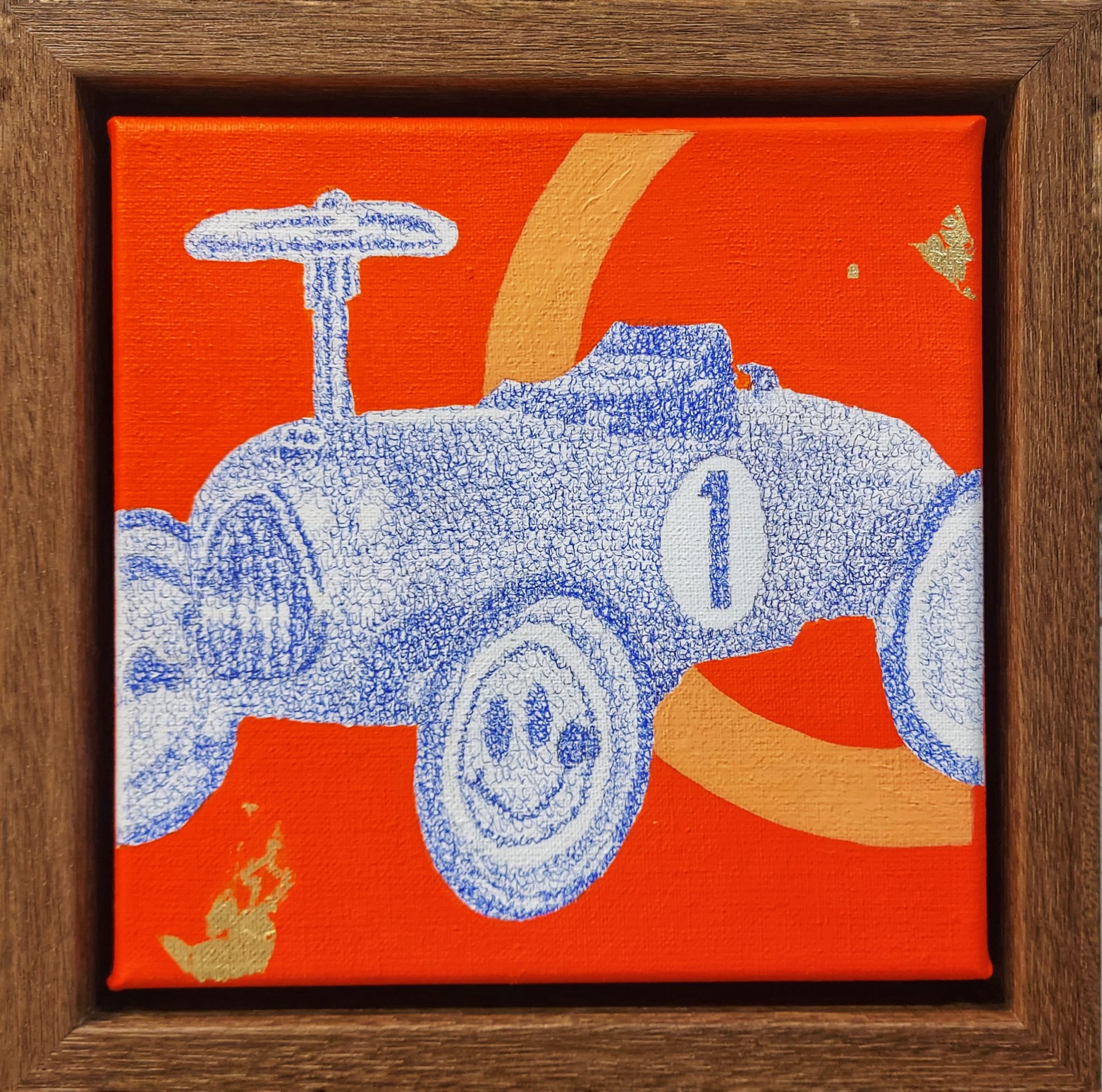 Acrylverf, Balpoint, bladmetaal, incl. lijst, Linnen
