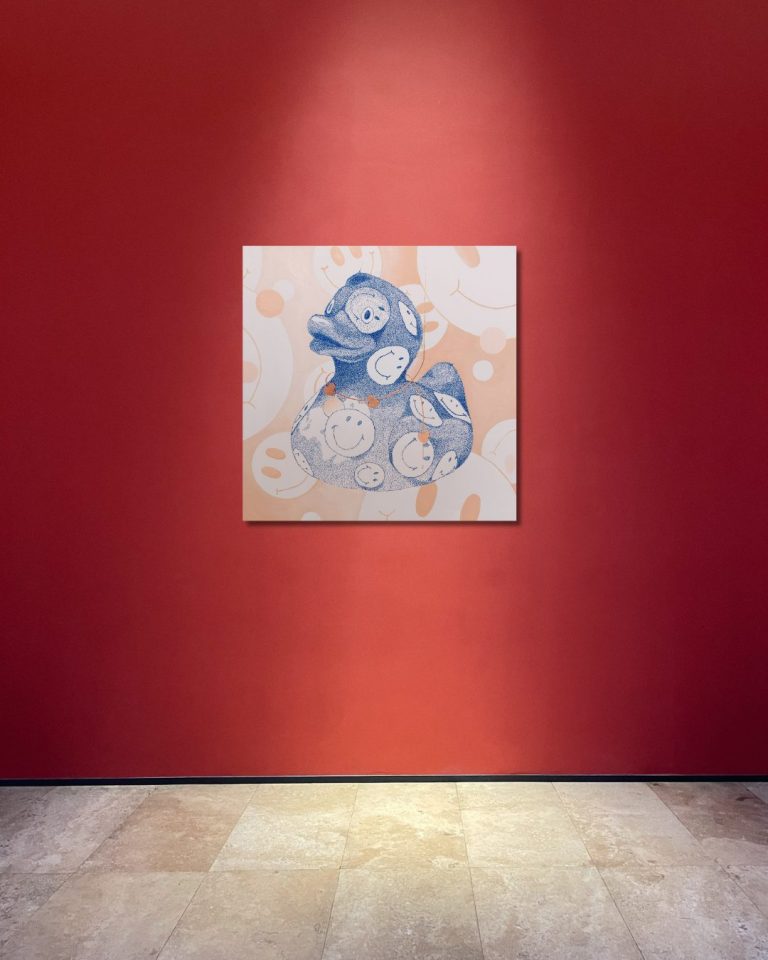 De Smileys zitten in het werk ‘verstopt’ en die mochten niet ontbreken. Dat is de positiviteit die Sheila de wereld in wil slingeren. Dat is hard nodig volgens haar.