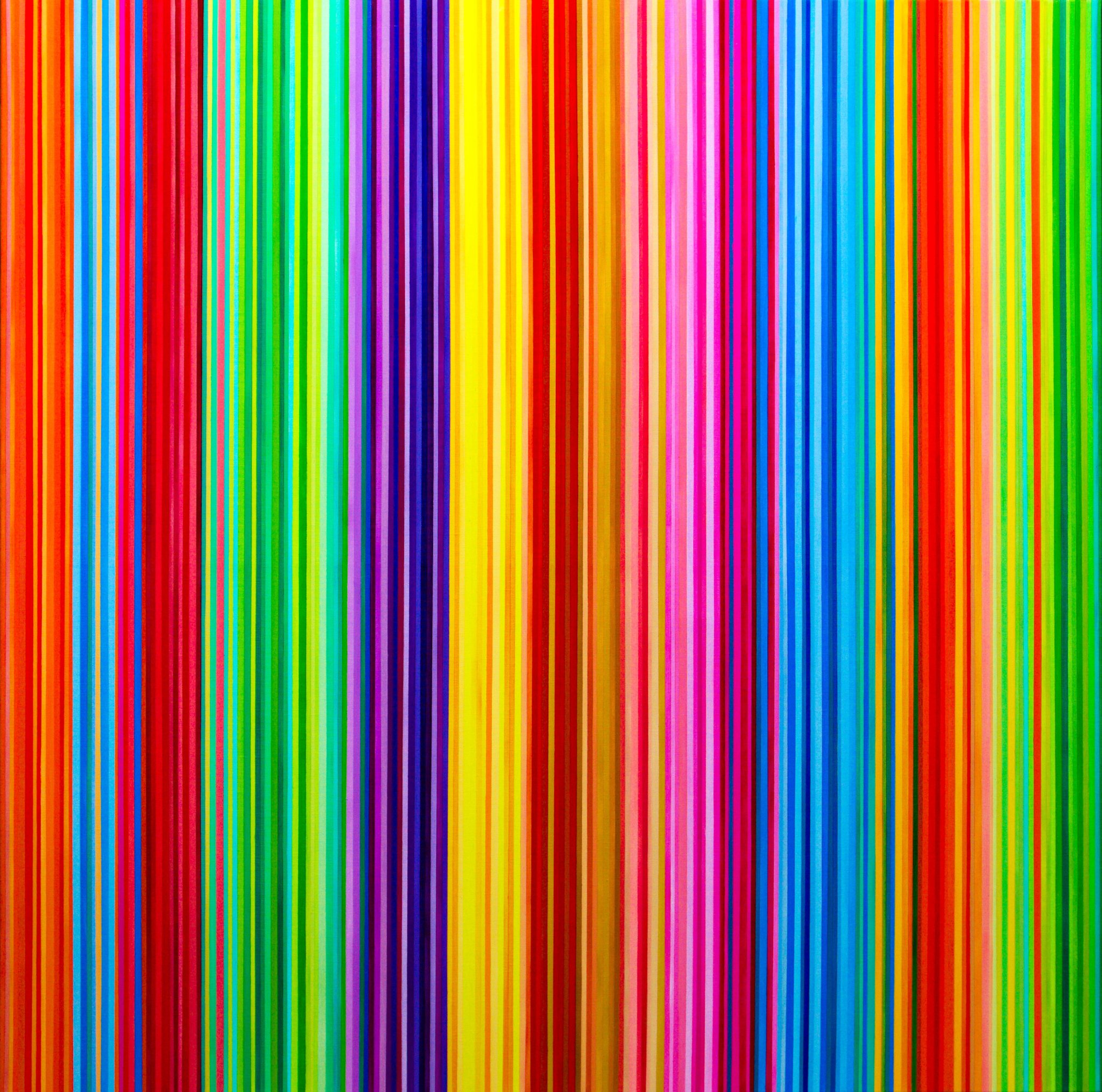 Dit is een xl schilderij dat van de muur spat met al haar spetterende kleuren.