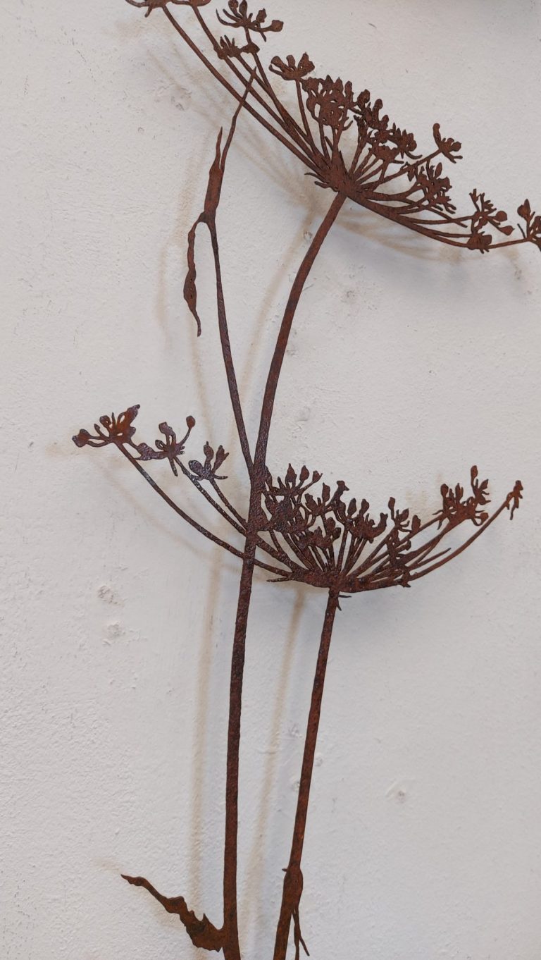 Schermbloemen, vervaardigd uit gerecycled staal, met de hand uit gefiguurzaagd. Elke schermbloem is weer een uniek exemplaar, nagetekend uit de natuur.