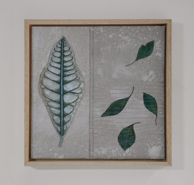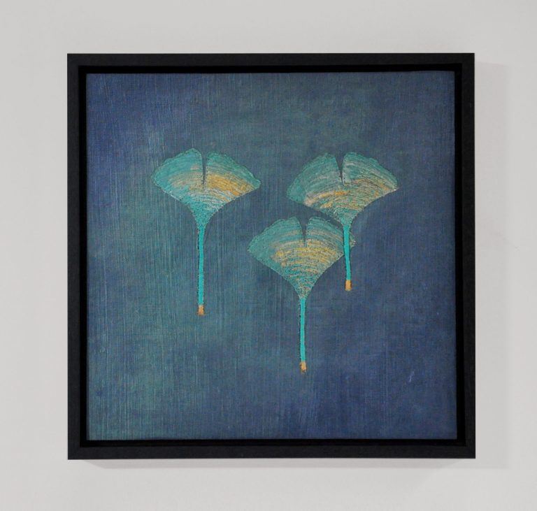 Haal de natuur in huis met kunst van Nicole Ponjee. Zij werkt met bladeren van planten, metallic verf en zijdegaren op paneel. Een verfijnd geheel dat uniek is aan elke muur.