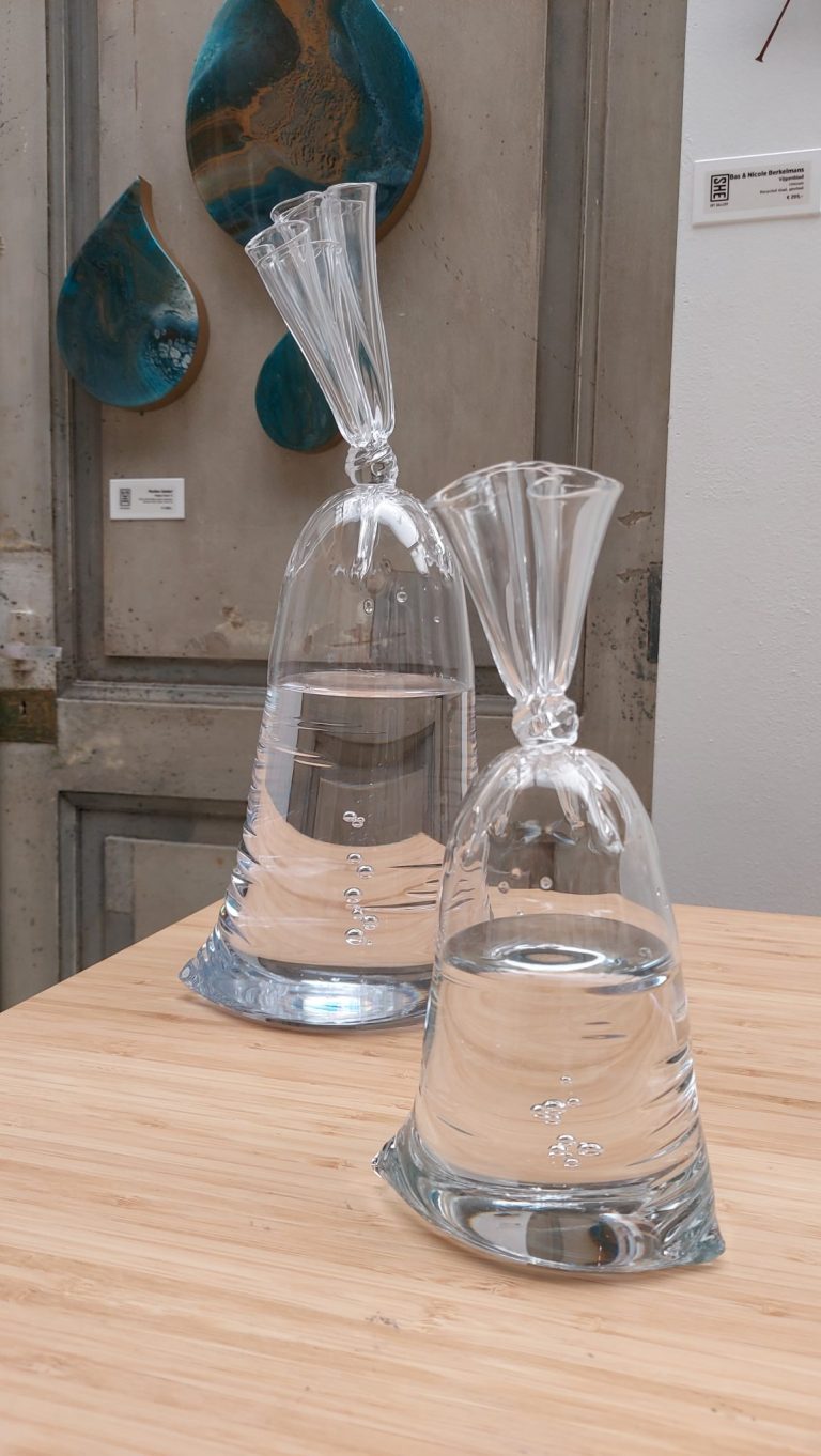 Hypperrealistisch sculptuur van een zak water, maar dan van glas. Uniek werk