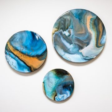 Dit kunstwerk straalt rust en balans uit door de ronde vorm en de met preciezie geplaatste bladgoud lijnen. De diep rode kleur nodigt uit tot warmte en gezelligheid en de…