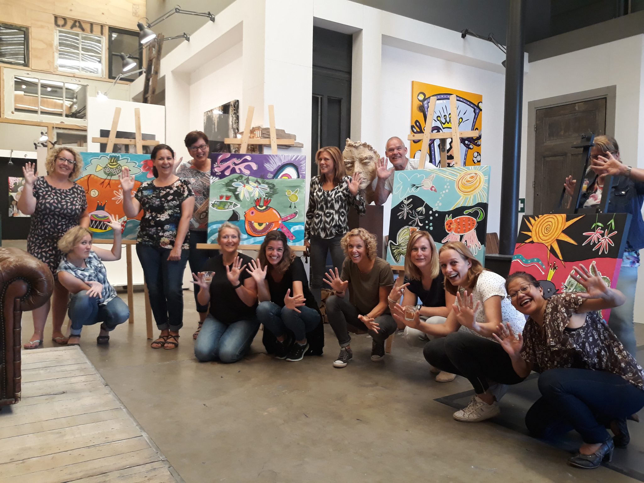 Bij SHE Art Gallery wordt een complete team workshop schilderen gegeven, vanaf 8 tot 16 personen. U wordt in onze galerie vol prachtige kunst alvast geïnspireerd en uw kantoor of werkruimte wordt een stuk fraaier met een kunstwerk aan de muur!
